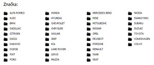 1. krok je výber značky (AUDI, BMW ...)