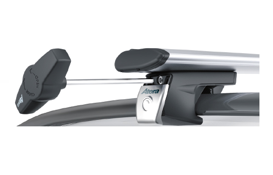 - Montáž nosiča je veľmi jednoduchá, stačí len položiť predmontovaný nosič na strešné pozdĺžniky (lyžiny), a špeciálnym momentový Atera kľúčom dotiahnuť.